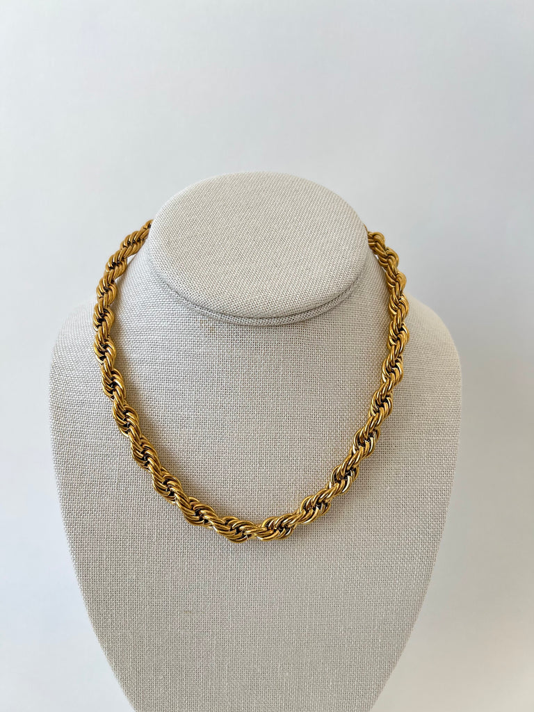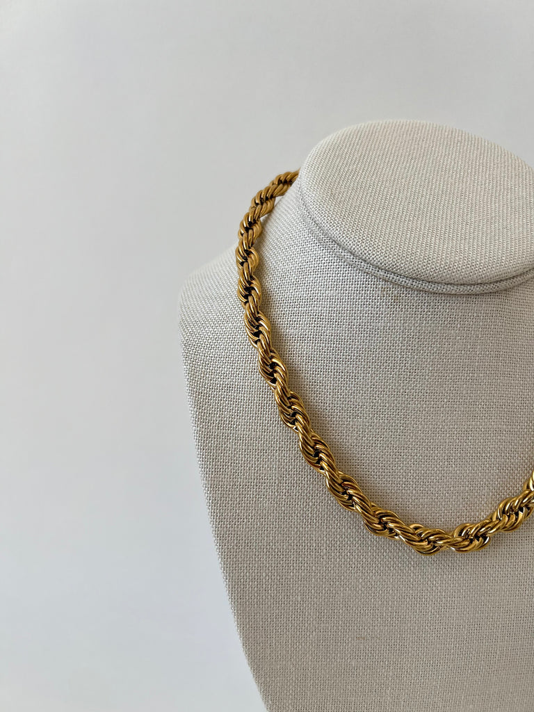 This chunky heavyweight necklace is the perfect statement piece alone or even stacked with other necklaces. It's 8mm, gold plated 18k stainless steel making it tarnish free and hypoallergenic!