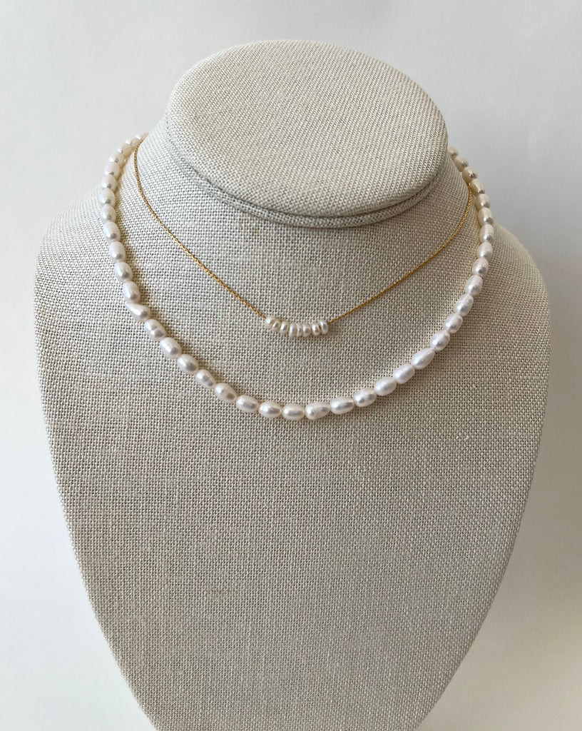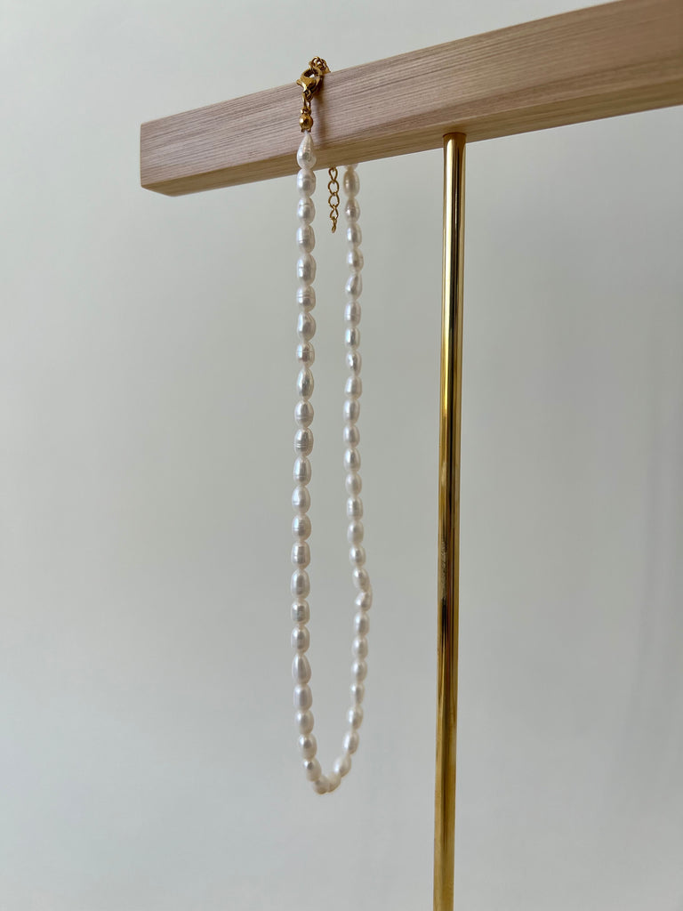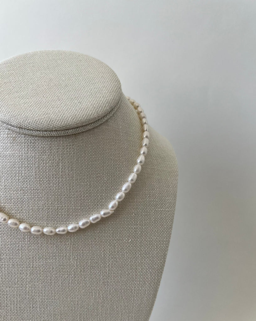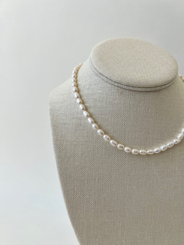 An elegant and timeless necklace that will add the perfect touch to every outfit. a strand of pearls 3-4mm and 38+5cm long acting more of a choker.